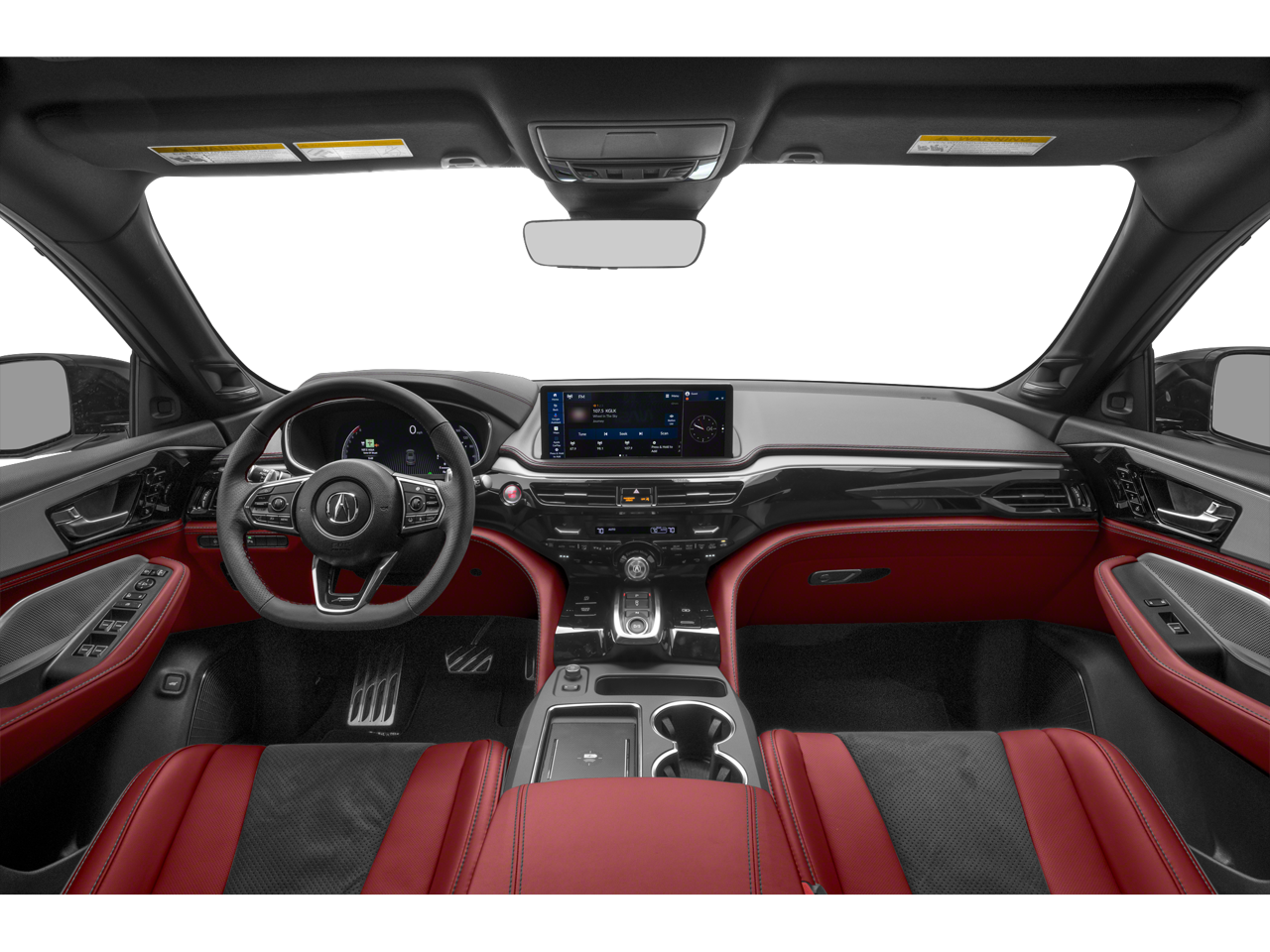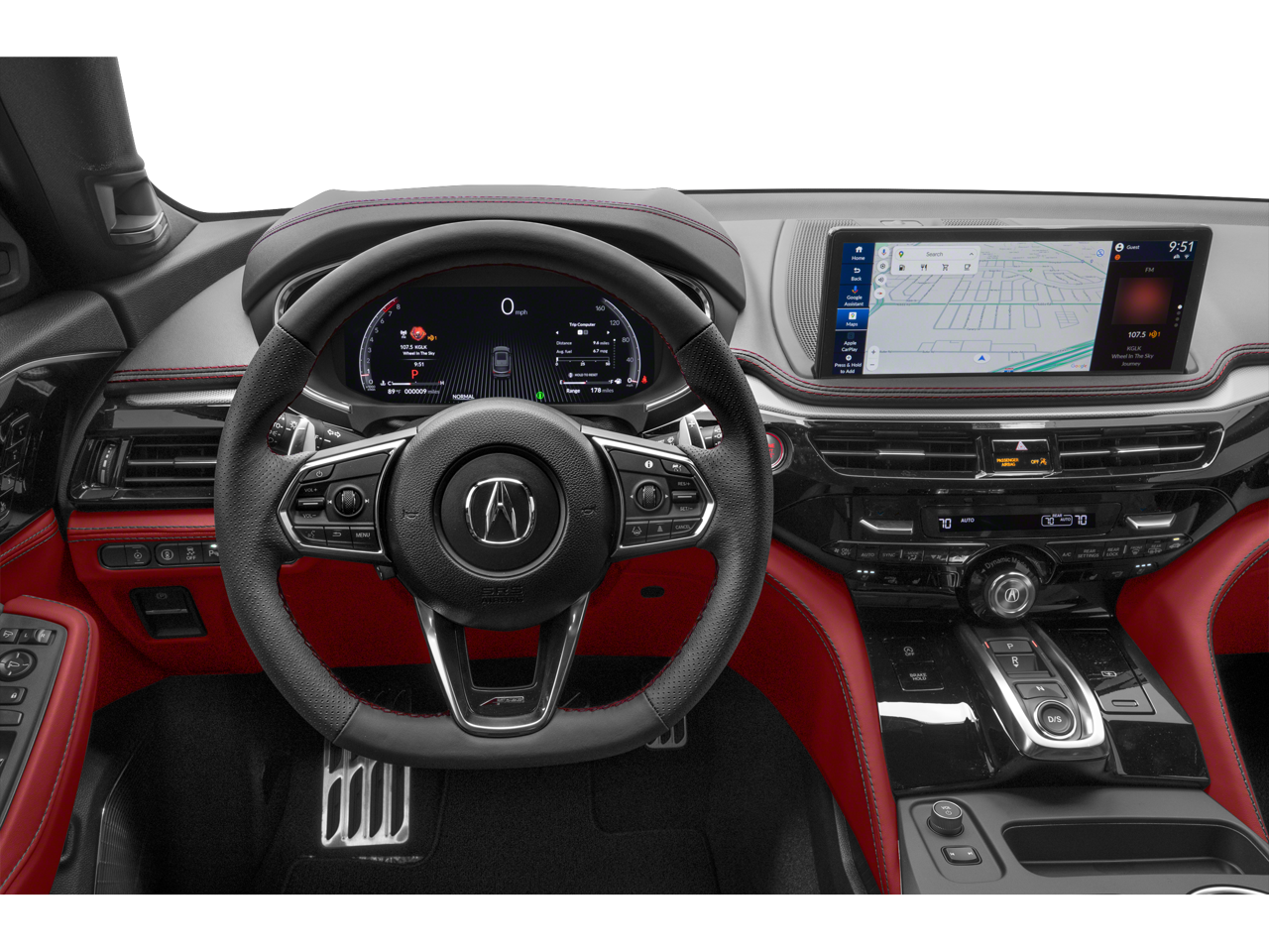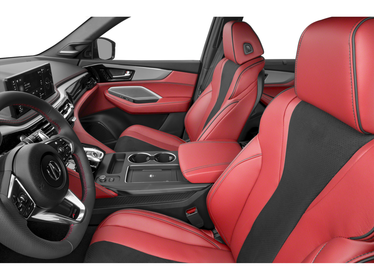 MDX A-Spec SH-AWD, Red w/Perforated Premium Milano Lthr & Ultrasuede Seats, 19 Speakers, 3rd row seats: split-bench, 4-Wheel Disc Brakes, ABS brakes, Air Conditioning, Alloy wheels, Anti-whiplash front head restraints, Apple CarPlay/Android Auto, Audio memory, Auto High-beam Headlights, Auto tilt-away steering wheel, Auto-dimming Rear-View mirror, Automatic temperature control, Brake assist, Bumpers: body-color, Compass, Delay-off headlights, Driver door bin, Driver vanity mirror, Dual front impact airbags, Dual front side impact airbags, Electronic Stability Control, Emergency communication system: AcuraLink, Exterior Parking Camera Rear, Four wheel independent suspension, Front anti-roll bar, Front Bucket Seats, Front Center Armrest, Front dual zone A/C, Front fog lights, Front reading lights, Fully automatic headlights, Garage door transmitter: HomeLink, Heated door mirrors, Heated front seats, HVAC memory, Illuminated entry, Knee airbag, Lane departure: Lane Keeping Assist System (LKAS) active, Leather steering wheel, Low tire pressure warning, Memory seat, Navigation system: Google built-in (3-Years Unlimited Data Plan for In-Vehicle Apps), Occupant sensing airbag, Outside temperature display, Overhead airbag, Overhead console, Panic alarm, Passenger door bin, Passenger vanity mirror, Power door mirrors, Power driver seat, Power Liftgate, Power moonroof, Power passenger seat, Power steering, Power windows, Premium audio system: Acura/ELS Studio 3D, Radio data system, Radio: Bang & Olufsen Premium Audio System, Rain sensing wipers, Rear air conditioning, Rear anti-roll bar, Rear reading lights, Rear seat center armrest, Rear window defroster, Rear window wiper, Remote keyless entry, Security system, Speed control, Speed-sensing steering, Speed-Sensitive Wipers, Split folding rear seat, Spoiler, Sport steering wheel, Steering wheel memory, Steering wheel mounted audio controls, Tachometer, Telescoping steering wheel, Tilt steering wheel, Traction control, Trip computer, Turn signal indicator mirrors, Variably intermittent wipers, Ventilated front seats, and Wheels: 20 x 9J Aluminum Alloy.