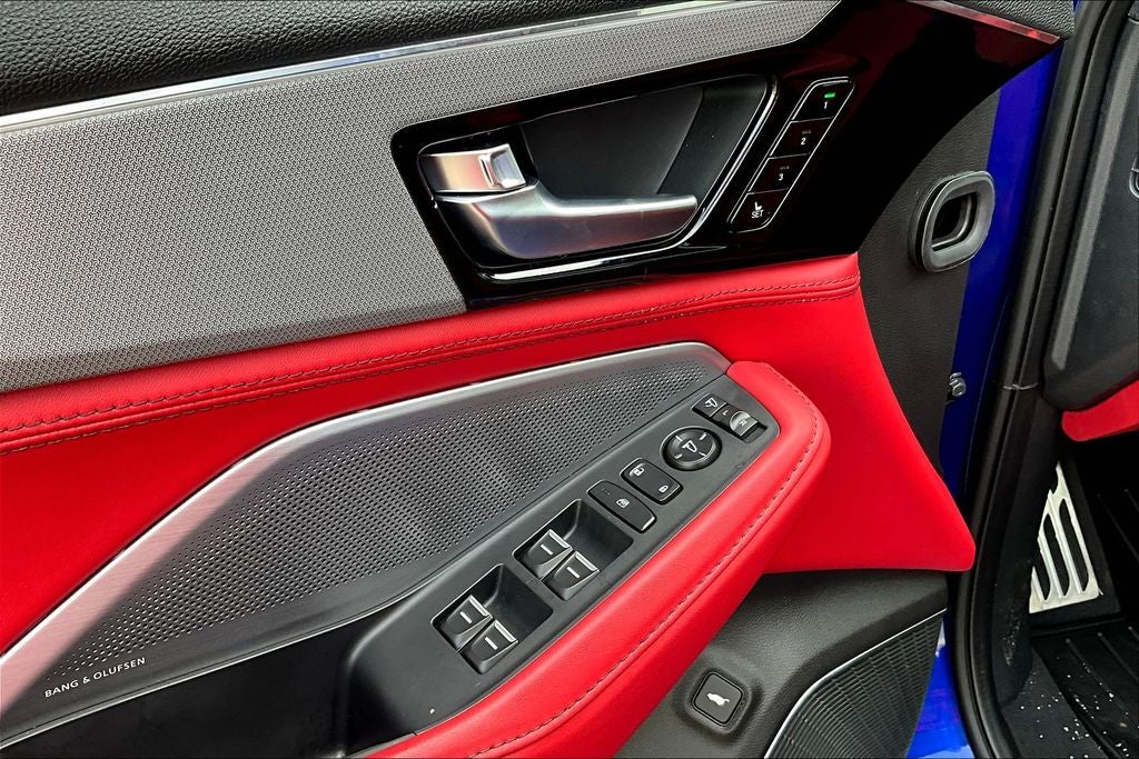Red w/Perforated Premium Milano Lthr & Ultrasuede Seats, 19 Speakers, 3rd row seats: split-bench, 4-Wheel Disc Brakes, ABS brakes, Air Conditioning, Alloy wheels, Anti-whiplash front head restraints, Apple CarPlay/Android Auto, Audio memory, Auto High-beam Headlights, Auto tilt-away steering wheel, Auto-dimming Rear-View mirror, Automatic temperature control, Brake assist, Bumpers: body-color, Compass, Delay-off headlights, Driver door bin, Driver vanity mirror, Dual front impact airbags, Dual front side impact airbags, Electronic Stability Control, Emergency communication system: AcuraLink, Exterior Parking Camera Rear, Four wheel independent suspension, Front anti-roll bar, Front Bucket Seats, Front Center Armrest, Front dual zone A/C, Front fog lights, Front reading lights, Fully automatic headlights, Garage door transmitter: HomeLink, Heated door mirrors, Heated front seats, HVAC memory, Illuminated entry, Knee airbag, Lane departure: Lane Keeping Assist System (LKAS) active, Leather steering wheel, Low tire pressure warning, Memory seat, Navigation system: Google built-in (3-Years Unlimited Data Plan for In-Vehicle Apps), Occupant sensing airbag, Outside temperature display, Overhead airbag, Overhead console, Panic alarm, Passenger door bin, Passenger vanity mirror, Power door mirrors, Power driver seat, Power Liftgate, Power moonroof, Power passenger seat, Power steering, Power windows, Premium audio system: Acura/ELS Studio 3D, Radio data system, Radio: Bang & Olufsen Premium Audio System, Rain sensing wipers, Rear air conditioning, Rear anti-roll bar, Rear reading lights, Rear seat center armrest, Rear window defroster, Rear window wiper, Remote keyless entry, Security system, Speed control, Speed-sensing steering, Speed-Sensitive Wipers, Split folding rear seat, Spoiler, Sport steering wheel, Steering wheel memory, Steering wheel mounted audio controls, Tachometer, Telescoping steering wheel, Tilt steering wheel, Traction control, Trip computer, Turn signal indicator mirrors, Variably intermittent wipers, Ventilated front seats, and Wheels: 20 x 9J Aluminum Alloy.