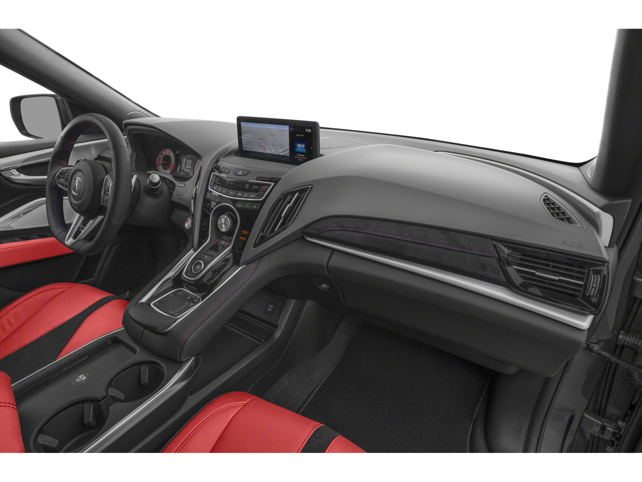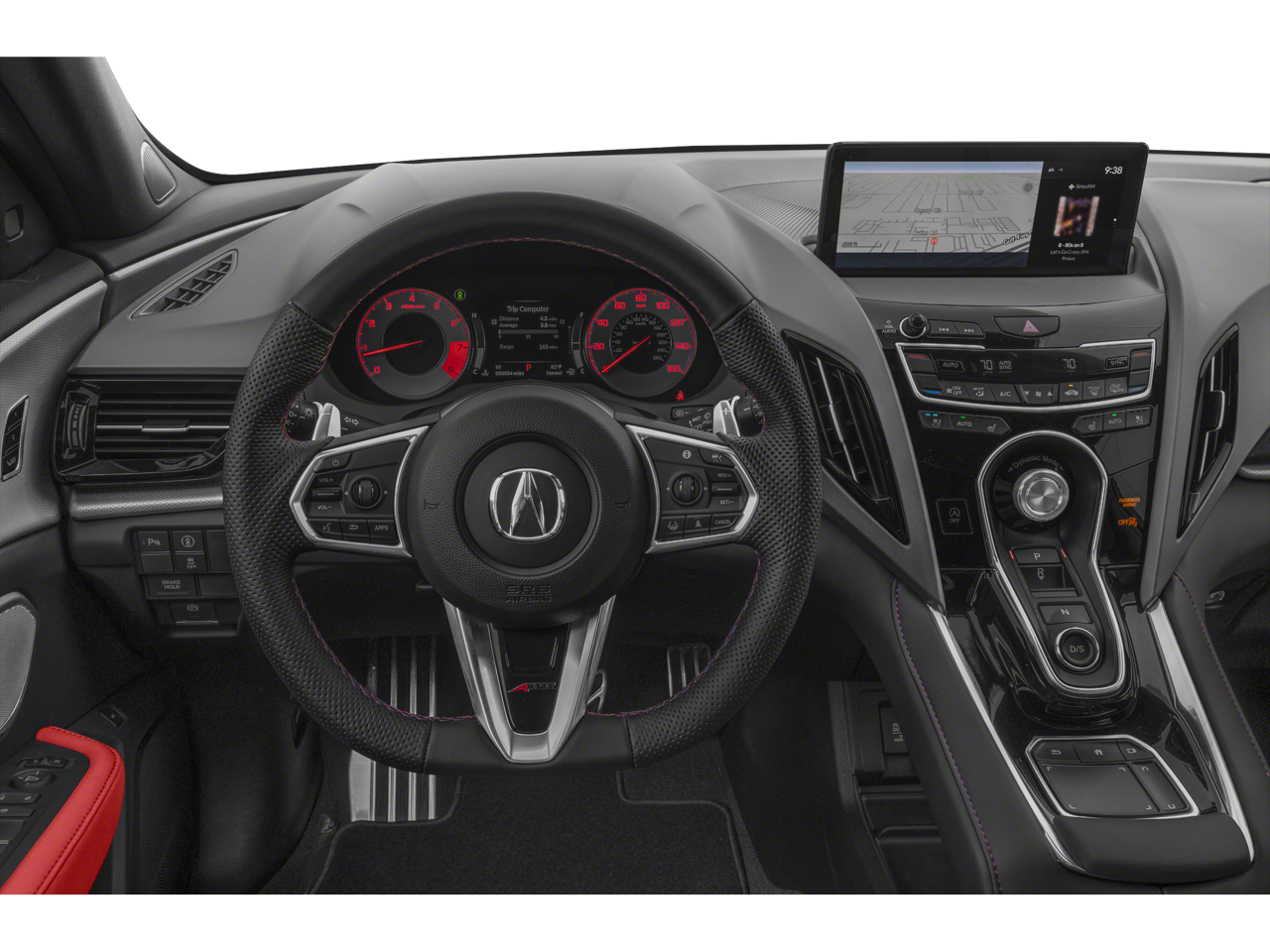 AWD, 16 Speakers, 4-Wheel Disc Brakes, ABS brakes, Air Conditioning, Alloy wheels, AM/FM radio: SiriusXM, Apple CarPlay/Android Auto, Auto High-beam Headlights, Auto-dimming Rear-View mirror, Automatic temperature control, Brake assist, Bumpers: body-color, Compass, Delay-off headlights, Driver door bin, Driver vanity mirror, Dual front impact airbags, Dual front side impact airbags, Electronic Stability Control, Emergency communication system: AcuraLink, Exterior Parking Camera Rear, Four wheel independent suspension, Front anti-roll bar, Front Bucket Seats, Front Center Armrest, Front dual zone A/C, Front fog lights, Front reading lights, Fully automatic headlights, Garage door transmitter: HomeLink, Heated & Ventilated Front Sport Seats, Heated door mirrors, Heated front seats, Illuminated entry, Knee airbag, Lane departure: Lane Keeping Assist System (LKAS) active, Low tire pressure warning, Memory seat, Navigation system: Acura Navigation System with 3D View, Occupant sensing airbag, Outside temperature display, Overhead airbag, Overhead console, Panic alarm, Passenger door bin, Passenger vanity mirror, Perforated Milano Premium Leather-Trimmed Interior, Power door mirrors, Power driver seat, Power Liftgate, Power moonroof, Power passenger seat, Power steering, Power windows, Radio data system, Radio: ELS Studio 3D Premium Audio System, Rear anti-roll bar, Rear reading lights, Rear seat center armrest, Rear window defroster, Rear window wiper, Remote keyless entry, Security system, Speed control, Speed-sensing steering, Split folding rear seat, Spoiler, Sport steering wheel, Steering wheel mounted audio controls, Tachometer, Telescoping steering wheel, Tilt steering wheel, Traction control, Trip computer, Turn signal indicator mirrors, Variably intermittent wipers, Ventilated front seats, and Wheels: 20 x 8.0J Shark Gray Machine-Finished.