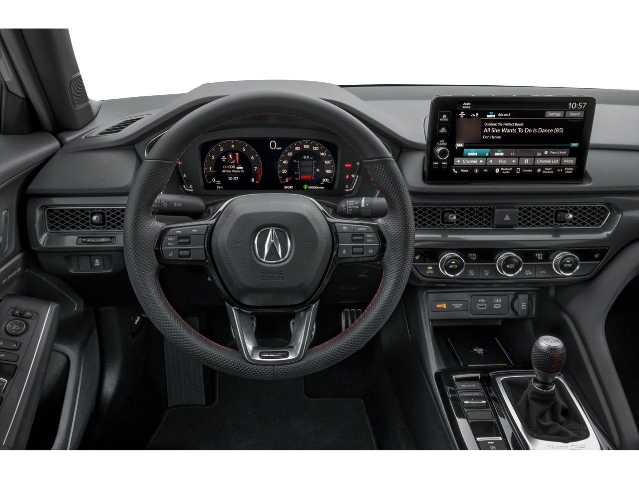 16 Speakers, 19 Aluminum-Alloy Wheels, 4-Wheel Disc Brakes, ABS brakes, Adaptive suspension, Air Conditioning, Alloy wheels, AM/FM radio: SiriusXM, Apple CarPlay/Android Auto, Auto High-beam Headlights, Auto-dimming Rear-View mirror, Automatic temperature control, Brake assist, Bumpers: body-color, Compass, Delay-off headlights, Driver door bin, Driver vanity mirror, Dual front impact airbags, Dual front side impact airbags, Electronic Stability Control, Emergency communication system: AcuraLink (subscription required), Four wheel independent suspension, Front anti-roll bar, Front Bucket Seats, Front Center Armrest, Front dual zone A/C, Front reading lights, Fully automatic headlights, Heads-Up Display, Heated door mirrors, Heated Front Bucket Seats, Heated front seats, Illuminated entry, Knee airbag, Lane departure: Lane Keeping Assist System (LKAS) active, Leather Shift Knob, Leather steering wheel, Low tire pressure warning, Occupant sensing airbag, Outside temperature display, Overhead airbag, Overhead console, Panic alarm, Passenger door bin, Passenger vanity mirror, Perforated Ultrasuede-Trimmed Front Seats, Power door mirrors, Power driver seat, Power steering, Power windows, Radio data system, Radio: ELS Studio 3D Premium Audio System, Rain sensing wipers, Rear anti-roll bar, Rear side impact airbag, Rear window defroster, Remote keyless entry, Security system, Speed control, Speed-sensing steering, Speed-Sensitive Wipers, Split folding rear seat, Spoiler, Steering wheel mounted audio controls, Tachometer, Telescoping steering wheel, Tilt steering wheel, Traction control, Trip computer, Turn signal indicator mirrors, and Variably intermittent wipers.