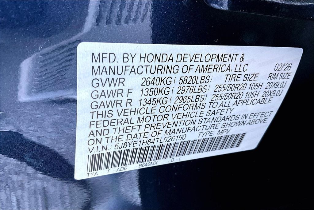 - Front Tire Size: P255/50HR20