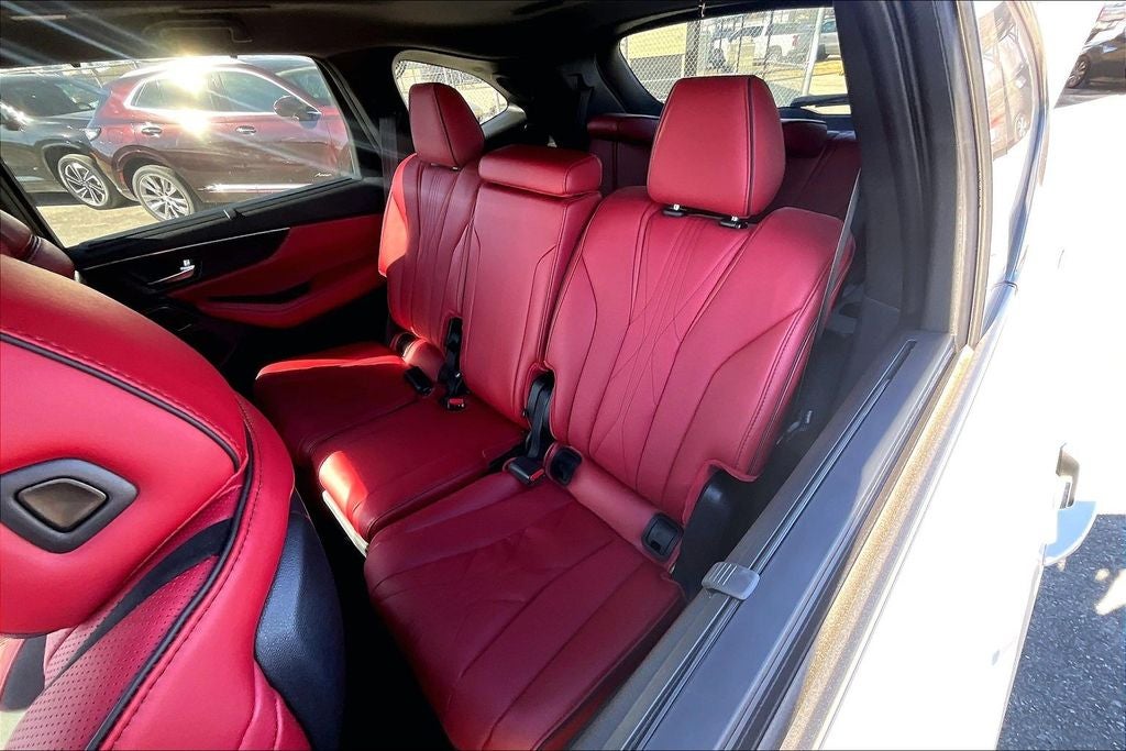 Red Leather, 3rd row seats: split-bench, 4-Wheel Disc Brakes, ABS brakes, Adaptive suspension, Air Conditioning, Alloy wheels, AM/FM radio, Anti-whiplash front head restraints, Apple CarPlay/Android Auto, Audio memory, Auto High-beam Headlights, Auto tilt-away steering wheel, Auto-dimming Rear-View mirror, Auto-leveling suspension, Automatic temperature control, Brake assist, Bumpers: body-color, Compass, Curvilinear Quilted Premium Milano Leather and Ultrasuede Seats, Delay-off headlights, Driver door bin, Driver vanity mirror, Dual front impact airbags, Dual front side impact airbags, Electronic Stability Control, Emergency communication system: AcuraLink, Exterior Parking Camera Rear, Four wheel independent suspension, Front anti-roll bar, Front Bucket Seats, Front Center Armrest, Front dual zone A/C, Front fog lights, Front reading lights, Fully automatic headlights, Garage door transmitter: HomeLink, Heads-Up Display, Heated and Ventilated Front Sport Seats, Heated door mirrors, Heated front seats, Heated rear seats, Heated steering wheel, HVAC memory, Illuminated entry, Knee airbag, Lane departure: Lane Keeping Assist System (LKAS) active, Leather steering wheel, Low tire pressure warning, Memory seat, Navigation system: Google built-in (3-Years Unlimited Data Plan for In-Vehicle Apps), Occupant sensing airbag, Outside temperature display, Overhead airbag, Overhead console, Panic alarm, Passenger door bin, Passenger vanity mirror, Power door mirrors, Power driver seat, Power Liftgate, Power moonroof, Power passenger seat, Power steering, Power windows, Premium audio system: ELS Studio 3D Signature Edition, Radio data system, Radio: Bang and Olufsen Ultra Sound System, Rain sensing wipers, Rear air conditioning, Rear anti-roll bar, Rear reading lights, Rear seat center armrest, Rear window defroster, Rear window wiper, Remote keyless entry, Security system, Speed control, Speed-sensing steering, Speed-Sensitive Wipers, Split folding rear seat, Spoiler, Sport steering wheel, Steering wheel memory, Steering wheel mounted audio controls, Tachometer, Telescoping steering wheel, Tilt steering wheel, Traction control, Trip computer, Turn signal indicator mirrors, Variably intermittent wipers, Ventilated front seats, and Wheels: 21 x 9.5J Aluminum Alloy.