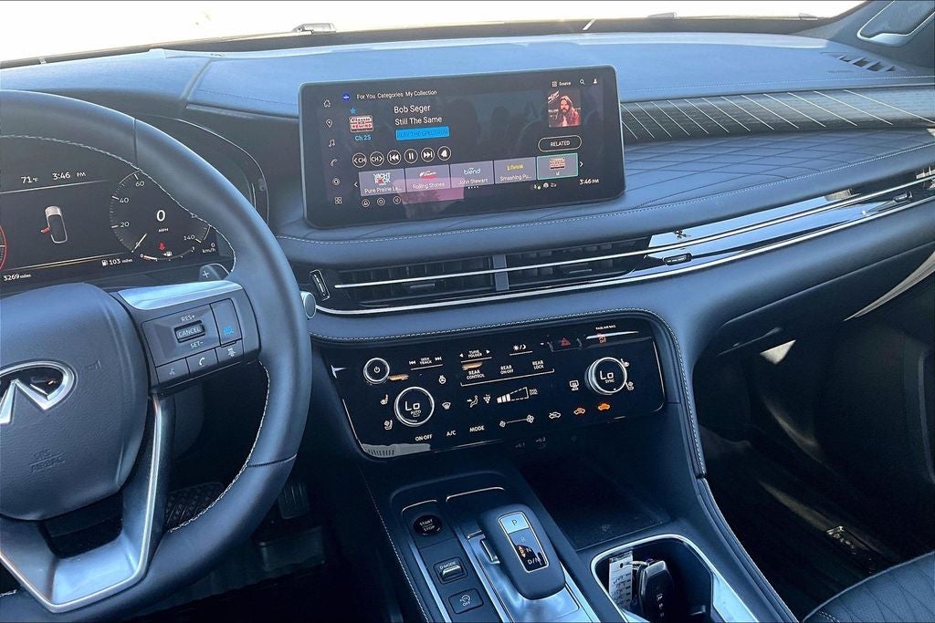 - Radio: Klipsch Reference Premiere Audio System -inc: 20 speakers w/individual audio, INFINITI InTouch 12.3" interactive display, Google built-in w/navigation: Google Assistant, Playstore, maps and data, SiriusXM satellite radio, wireless Apple CarPlay, wireless Android Auto, advanced voice recognition (one shot VDE, Natural Language Understanding (NLU)), INFINITI InTouch services and 5G Wi-Fi hotspot, Active Noise Cancellation (ANC) and 2 data capable type-C USB ports in front row